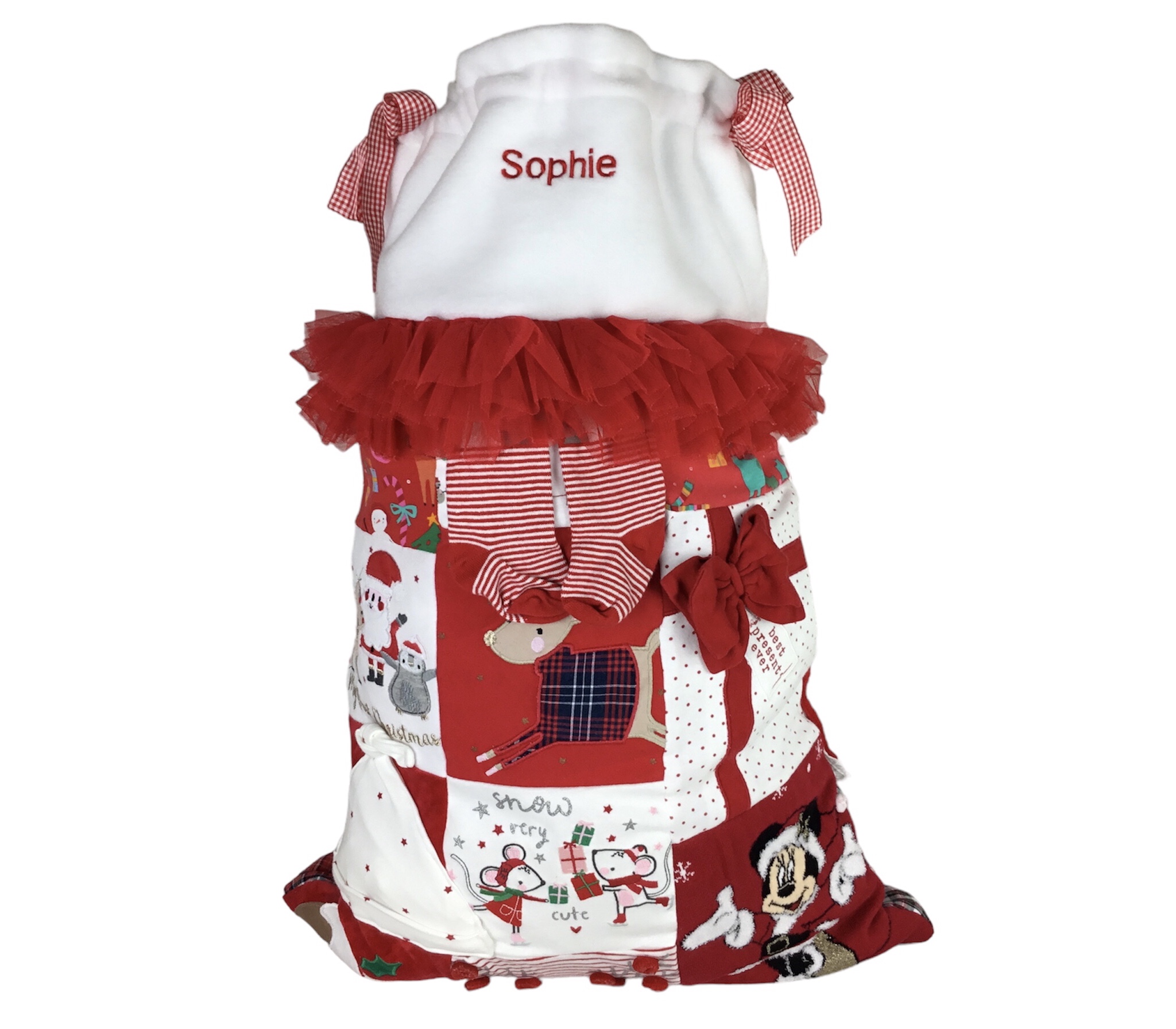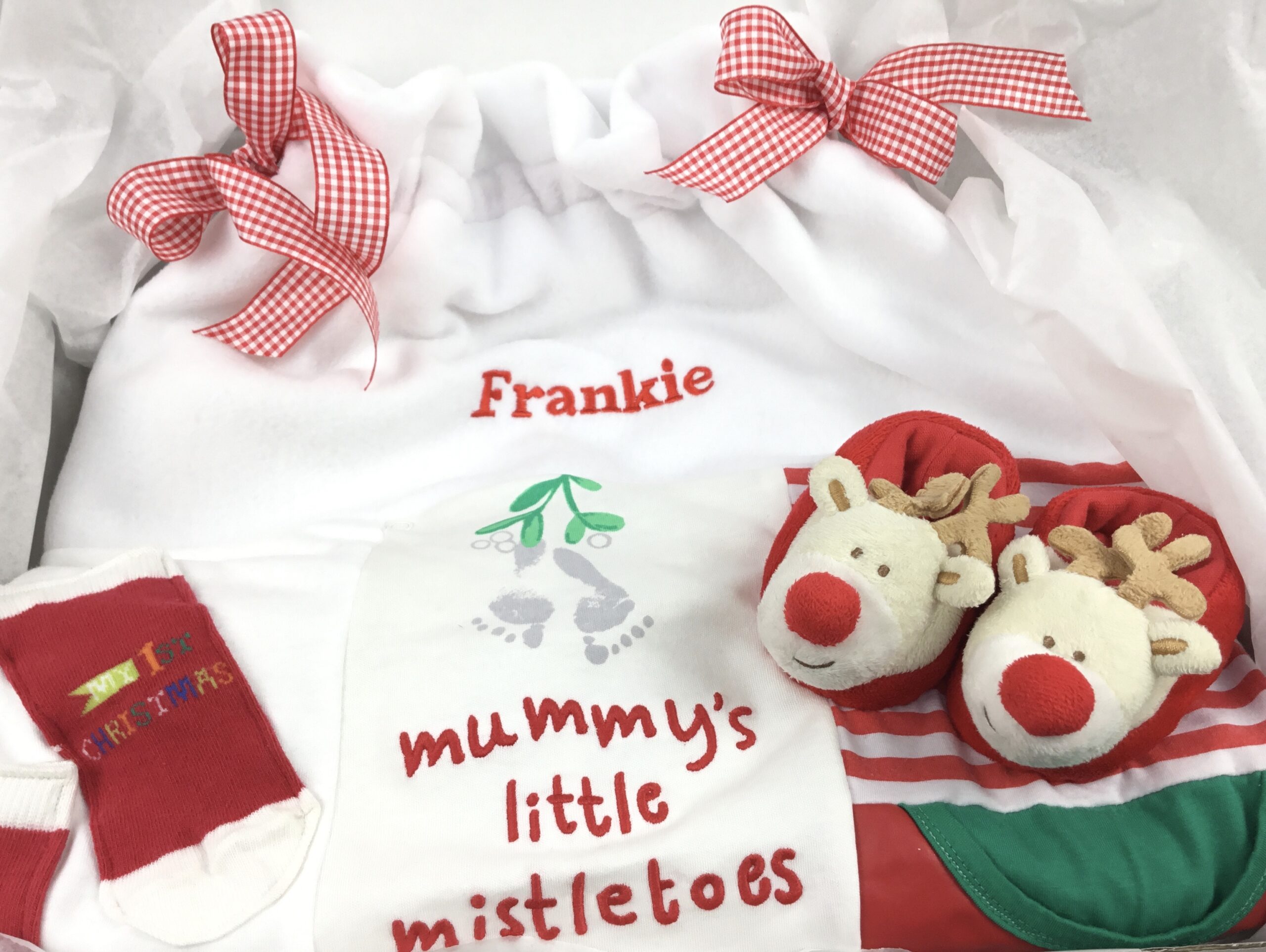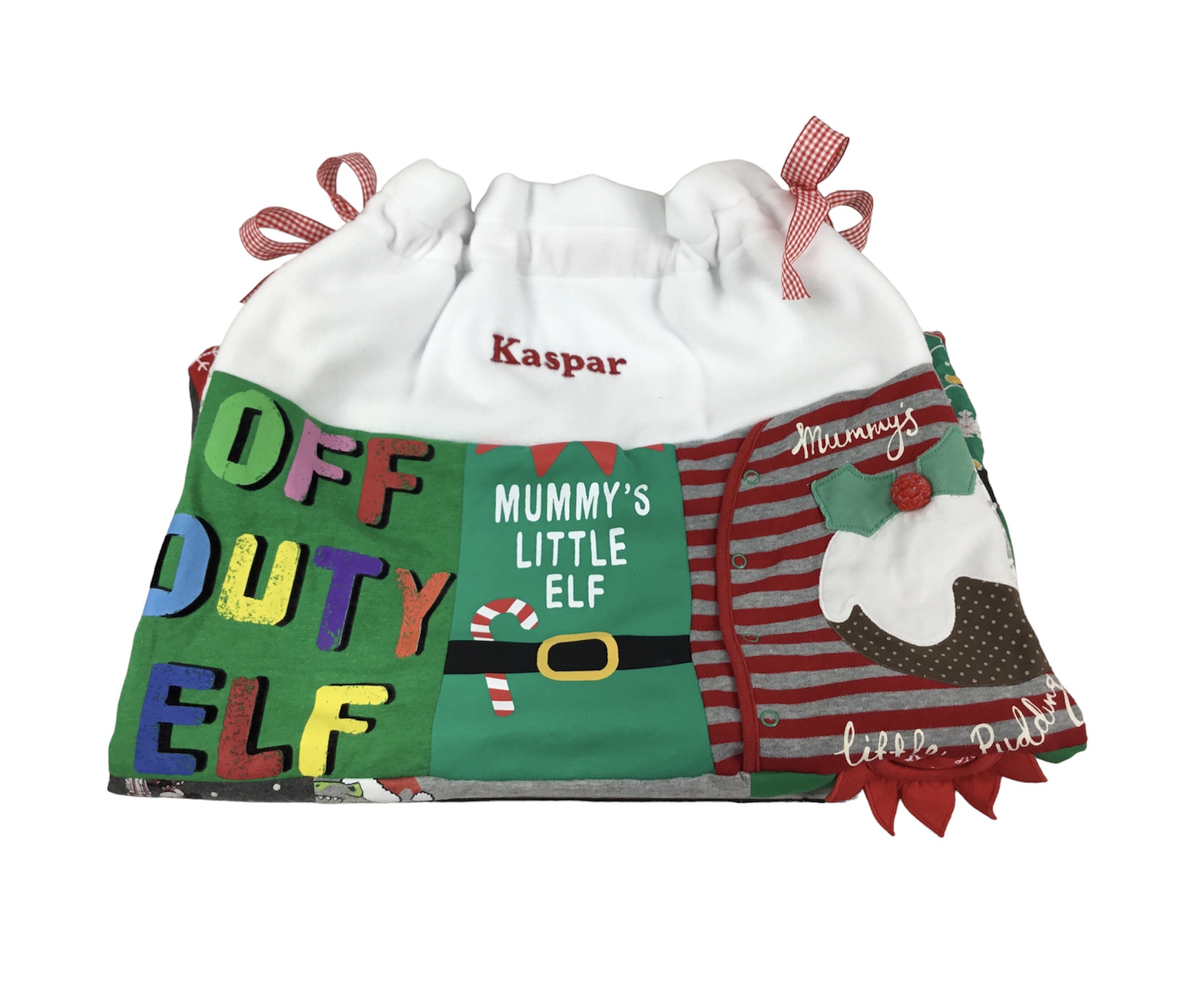 If your little one has some adorable Christmas outfits worn last Christmas, what better way to put them to use by creating a handmade personalised Christmas Sack Keepsake.
